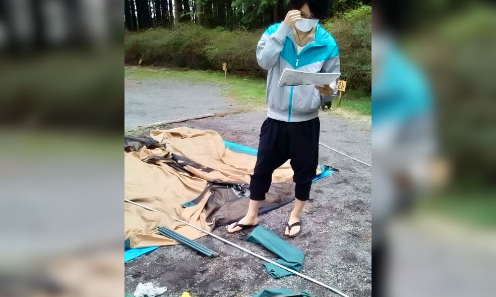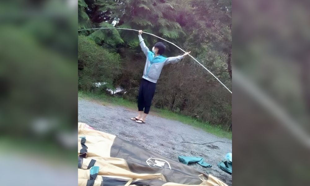 初めてのテント設営は、パーツの使い方から自立の仕組みまでわからず大苦戦。