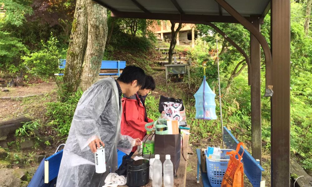 到着までは天候も落ち着いていましたが、次第に悪天候へと変わってきたため急いで準備。はじめての雨キャンプ。