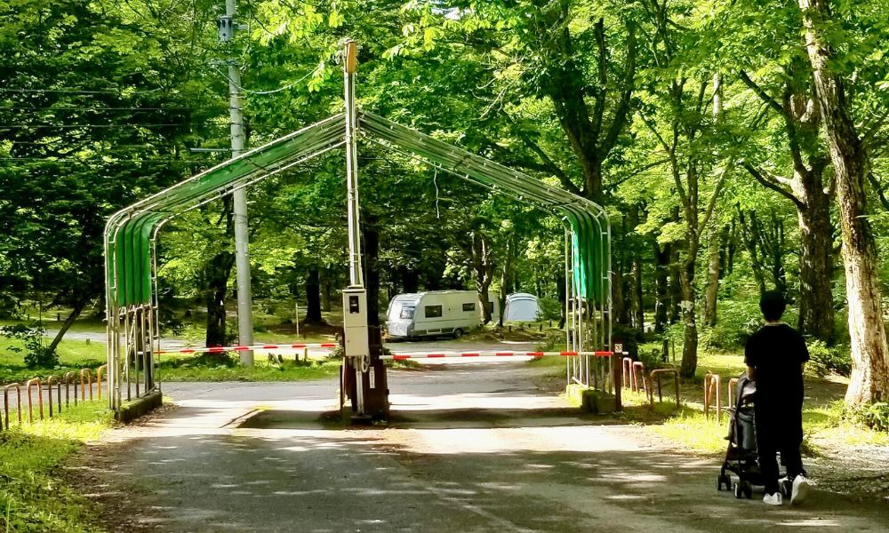 平湯キャンプ場は、チェックインを済ませて車でゲートを抜けると、外部の車が入ってこない安心のシステムになっています。
