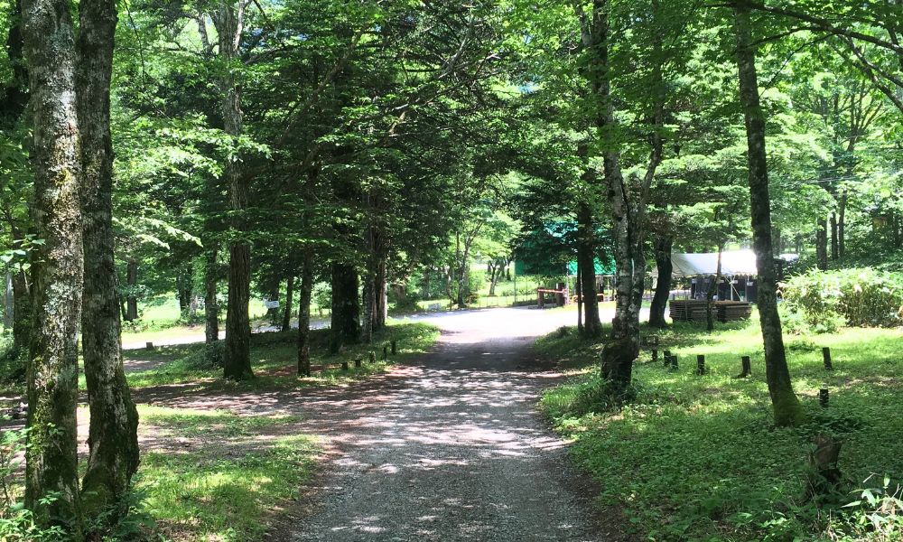 → 標高が高いところにあるので、日中でも木陰は涼しく、夜は長袖が欲しくなるほど。避暑地キャンプとして人気です。 - 木々で区切られたフリーサイト