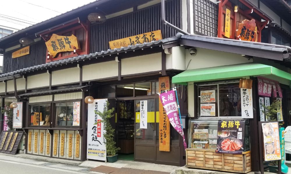 キャンプの楽しみといえばやっぱりご当地グルメ。今回はキャンプ場へ向かう途中に飛騨牛専門店へ立ち寄りました。