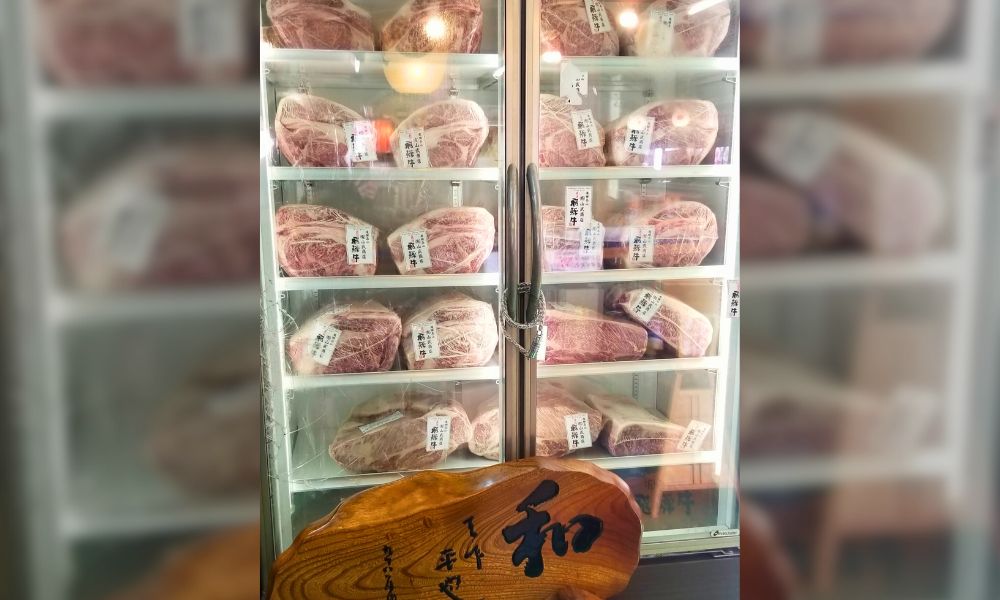 お店に入るとショーケースいっぱいに並んだ飛騨牛。見ているだけで気分が上がります。