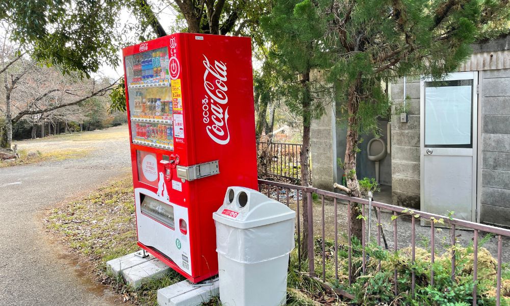 自動販売機では、コーラやお茶、コーヒーなどを購入できます。