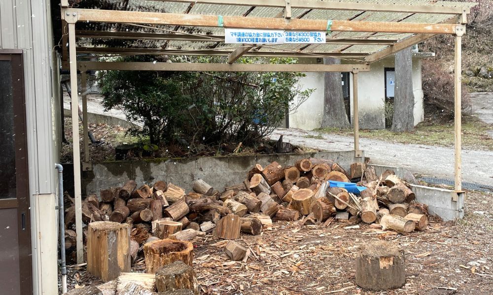 清流の里ぬくみには、セルフサービスで利用できるまき割場が用意されています。