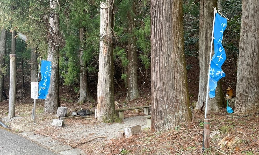 キャンプ場の近くには、名水スポットとして知られる「うぐいすの水」があります。