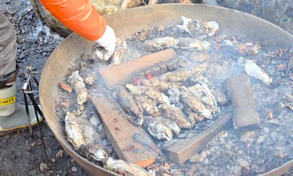 センターハウス前では焚き火で焼き芋を焼いていました。