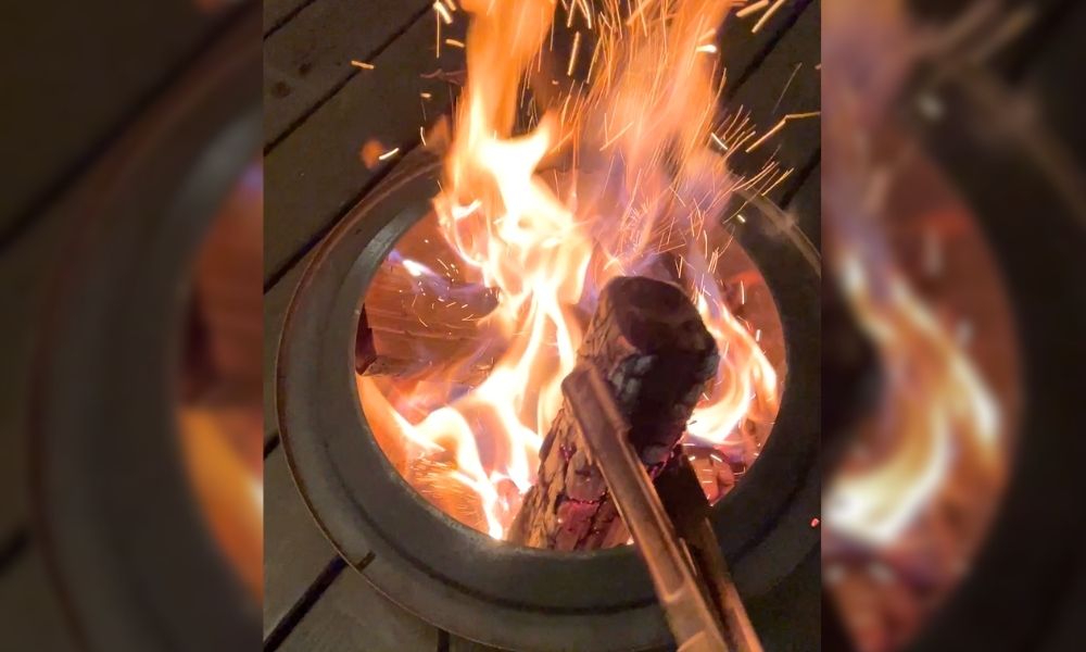 普段キャンプで使っている焚き火台とは違ったモノなので新鮮でした。防寒対策をしていれば、火を眺めながらゆっくり過ごす時間がつくれます。