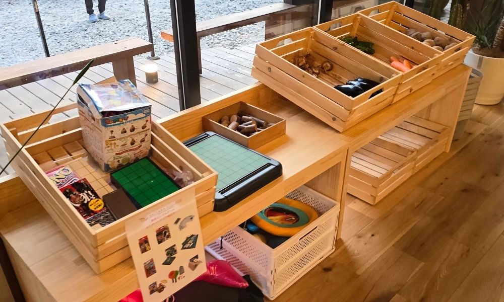 フリースペースにはオセロなどのボードゲームが用意されており、無料で貸し出し可能。天候が悪い日や夜の時間帯にも楽しめます。